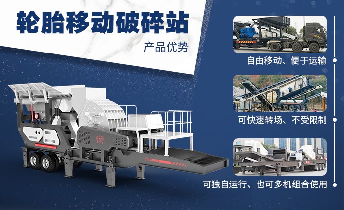 轮胎式移动破碎站在卡车车头的牵引下,即可自由行走、运输、爬坡等,可以直接开到客户生产现场、减少石料运输的费用,为客户提供更多的便利。