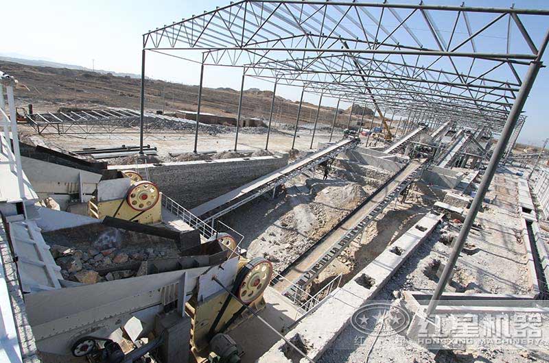 设备配置:大型鄂式破碎机设备+大型反击破碎机+振动筛+输送机