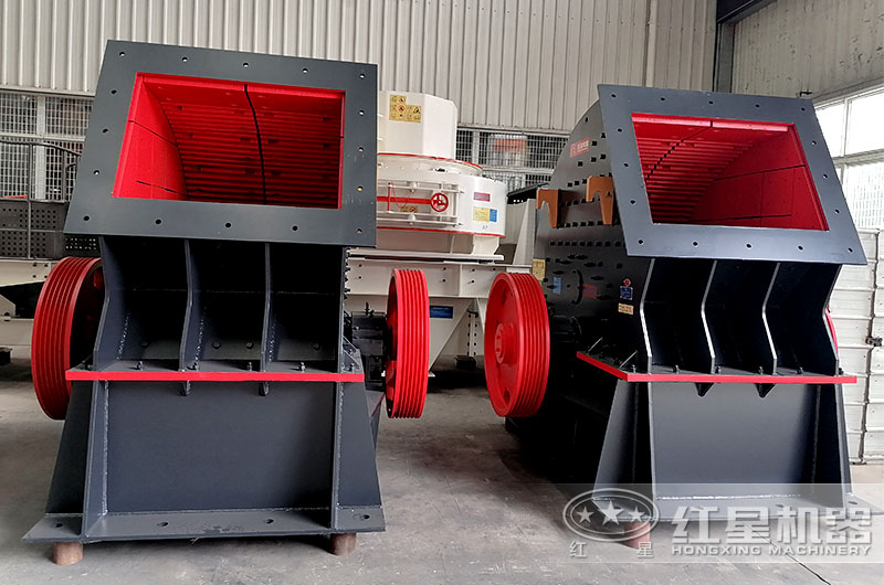 c) 锤式破碎机: 中细碎设备,进料粒度≤1200mm,成品规格在40mm以下,锤式破碎机是一台一段式破碎机,具有一次破碎一次成型的特点,锤破一台相当于颚式破碎机+反击式破碎机两台设备的加工效果,性价比很高。